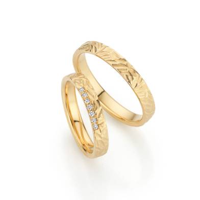- Einzigartig: Jede Struktur ist individuell vom Goldschmied von Hand gearbeitet und unterscheidet sich in kleinen Details. So ist jeder Ring ein Unikat – genauso wie eure Beziehung.